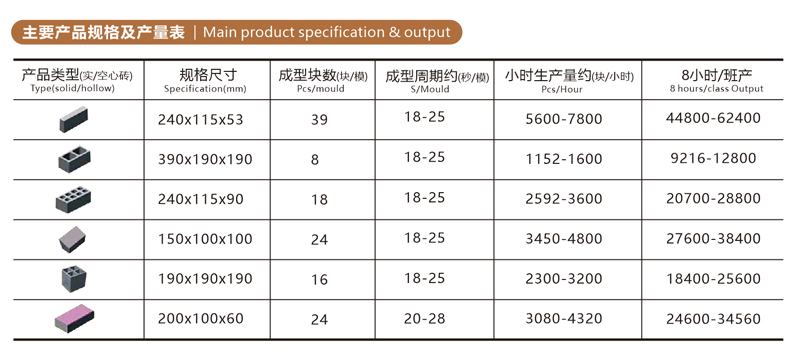 成型周期 (s) | 18-25(磚型區(qū)別) | 液壓系統(tǒng) | 編碼器伺服液壓控制 |