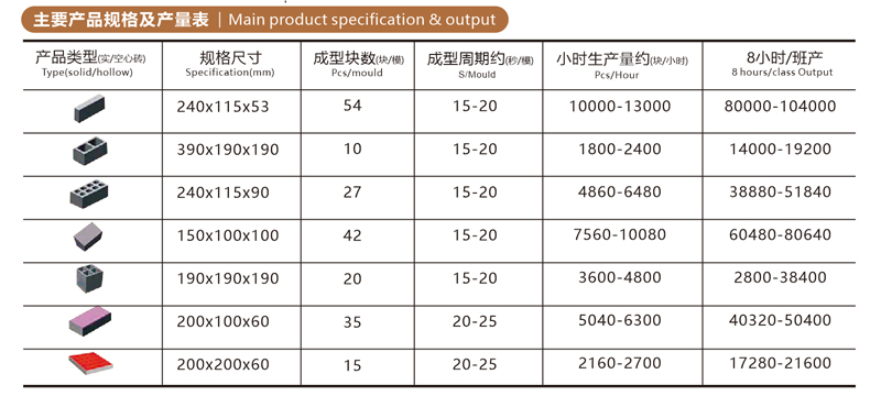 成型周期 (s) | 10-18(磚型區(qū)別) | 液壓系統(tǒng) | 編碼器伺服液壓控制 |
